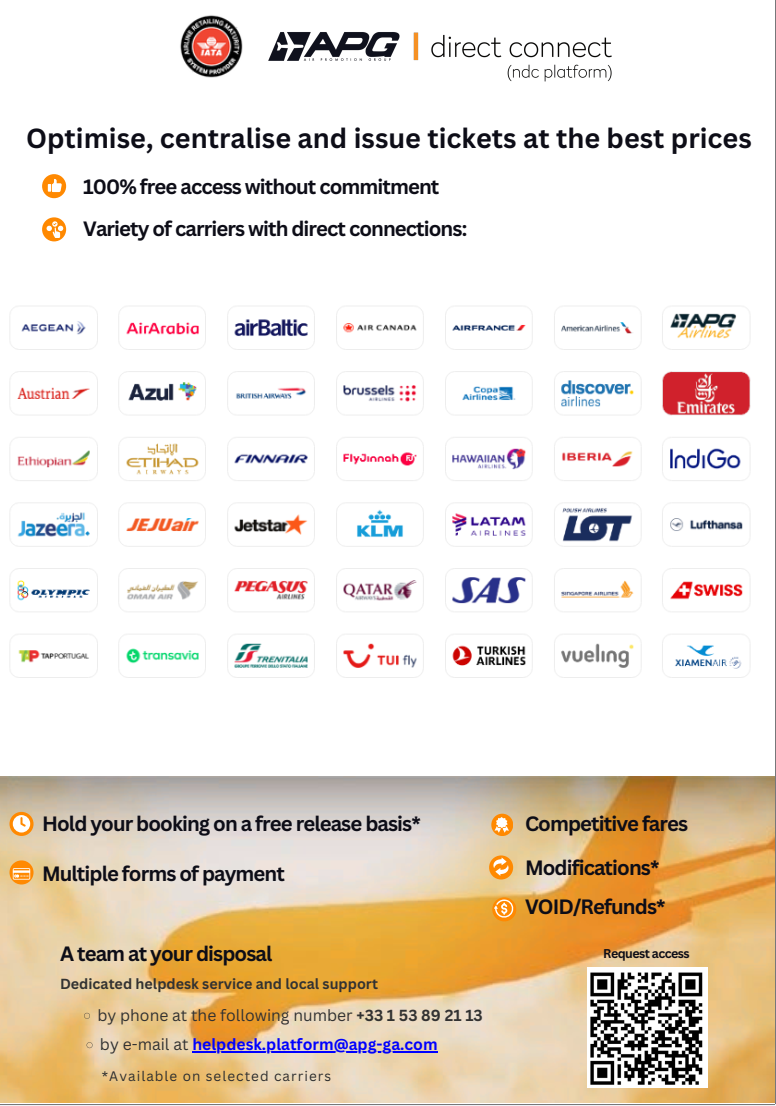 Sa APG Direct Connect dobijate besplatan pristup ne samo avio kartama, već i širokom spektru dodatnih usluga koje unapređuju iskustvo vaših klijenata – i vašu zaradu.Za više informacija posetite